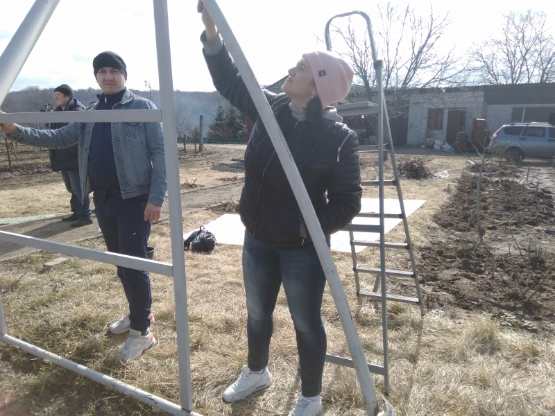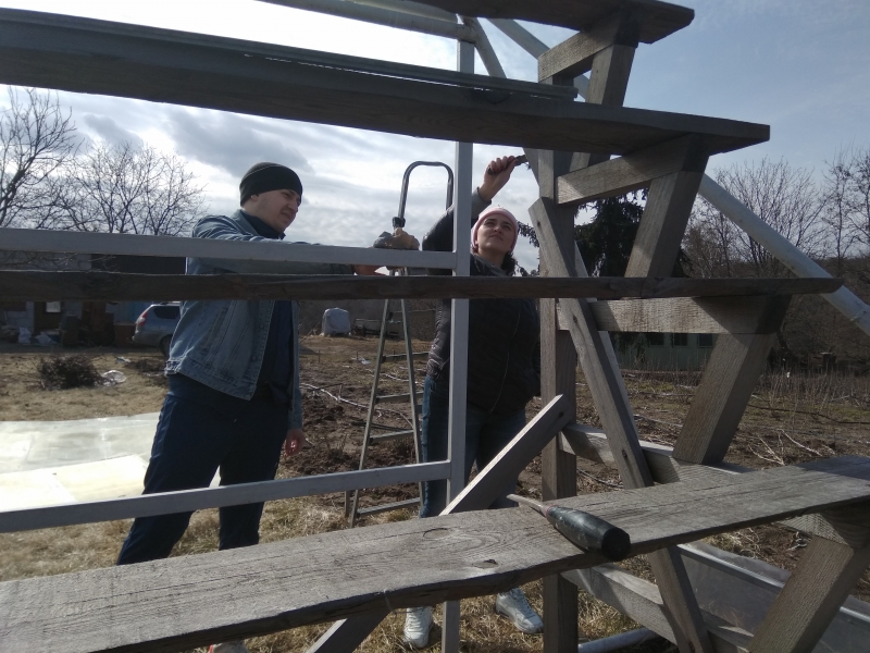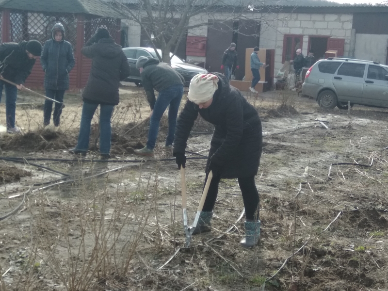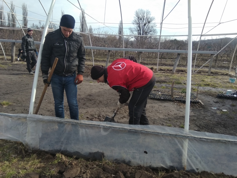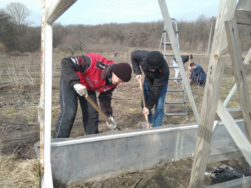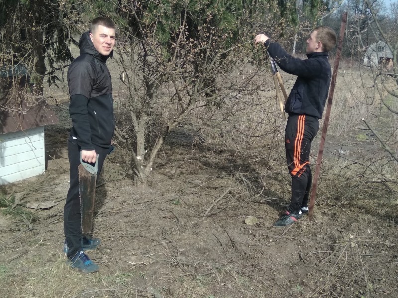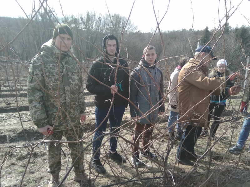 Після зими роботи особливо багато, тож працювали усім колективом. Викладачі не лише навчали студентів, передаючи їм свої знання й досвід, а й допомагали, підтримували, а у даному випадку – надихали власним прикладом, працюючи зі студентами пліч-о-пліч: прибирали, ремонтували, фарбували, відкопували і обрізували виноград, обчищали і спилювали старі дерева тощо. Працювали весело, з вогником, у найкращих традиціях української толоки. І хоч зробити фото «до» часу не знайшлося, – можна побачити, як все відбувалось.