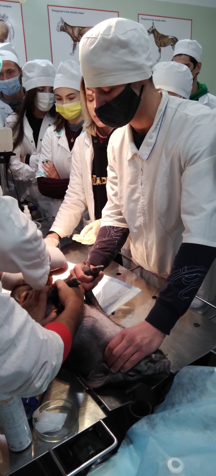 Навчання студентів 3 курсу факультету ветеринарної медицини, не зважаючи на складну епізоотичну ситуацію в країні, проходить згідно календарного плану. 7 жовтня студенти 8 та 11 груп під керівництвом доцентів Ткаченка В.В. та Солоніна П.К. відпрацювали теоретичні та практичні навички методів кастрації тварин, а саме кастраціїї поросят.