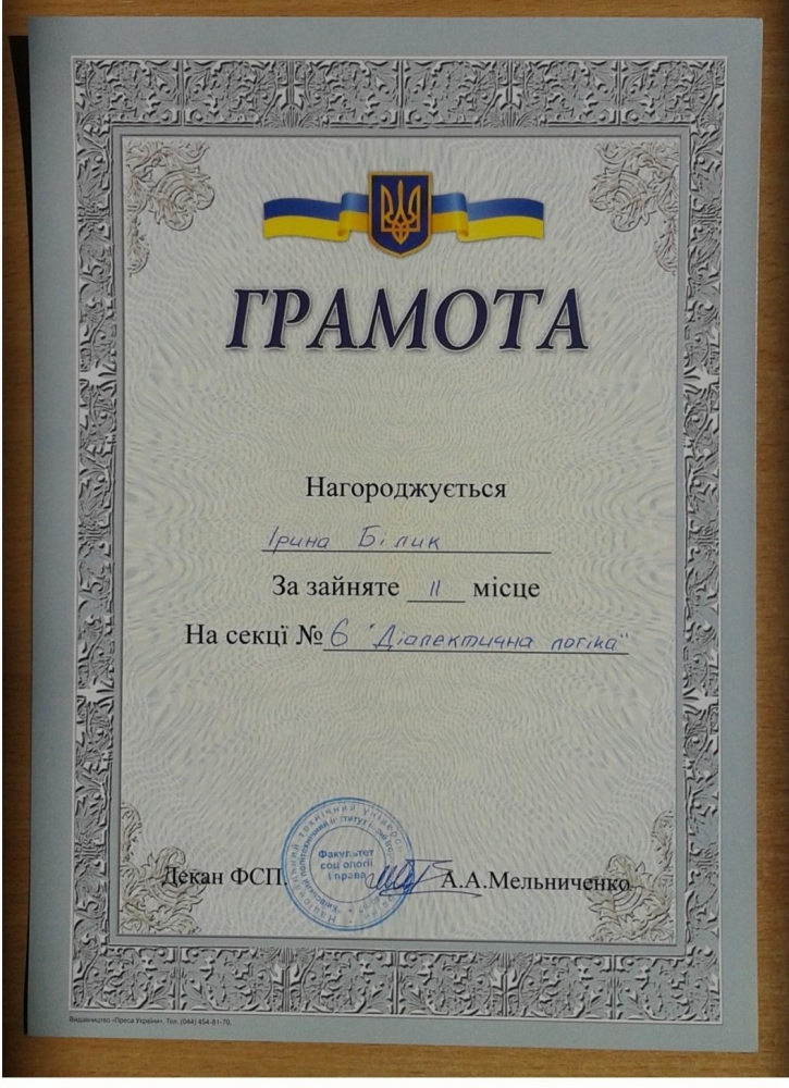 В результаті роботи студентка другого курсу юридичного факультету Ірина Білик доповіддю про сутність жіночої краси посіла 2-е місце. Також були відзначені Олександр Бадада, Владислав Зозуля, Марина Котлярова та Ання Чапля.
