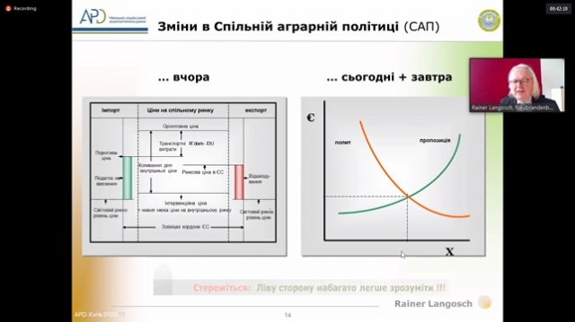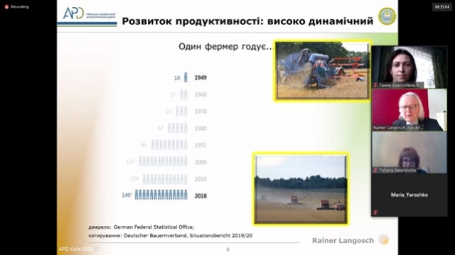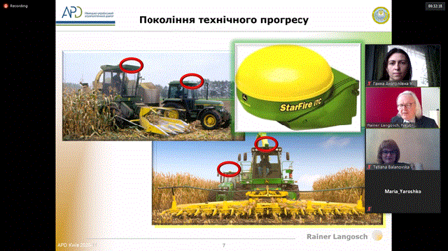 У своєму виступі др. Райнер Лангош розкрив багато актуальних та своєчасних питань щодо сучасного стану сільського господарства Німеччини та України; розказав про тенденції технічного прогресу, розвиток продуктивності, збільшення інвестицій в сільське господарство тощо.
