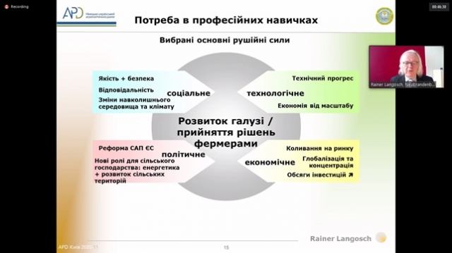 Підсумовуючи результати виступу, др. Райнер Лангош відзначив, що підготовка фахівців аграрного спрямування є важливим напрямом української та німецької освіти. При цьому випускники, що здобули ґрунтовну теоретичну та практичну підготовку у закладах вищої освіти, нині є затребуваними спеціалістами, яких залучають для реалізації багатьох вітчизняних та зарубіжних проектів.