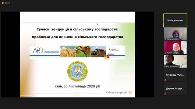 Зустрічі з визначними вітчизняними і зарубіжними науковцями та практиками стали хорошою традицією для викладачів та здобувачів вищої освіти факультету аграрного менеджменту.  Так, 30 листопада в межах співпраці кафедри менеджменту ім. проф. Й. С. Завадського з Німецько-українським агрополітичним діалогом при Національній асоціації сільськогосподарських дорадчих служб України «Дорада» була поведена онлайн лекція: «Сучасні тенденції в сільському господарстві». Спікером даного заходу виступив  др. Райнер Лангош, професор Вищої школи Нойбранденбург.