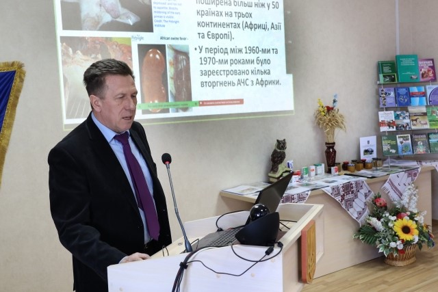 Зокрема Валерій УШКАЛОВ висвітлив питання щодо сучасних вимог, які висуває Всесвітня організація охорони здоров’я тварин (WOAH) до вакцин проти африканської чуми свиней.