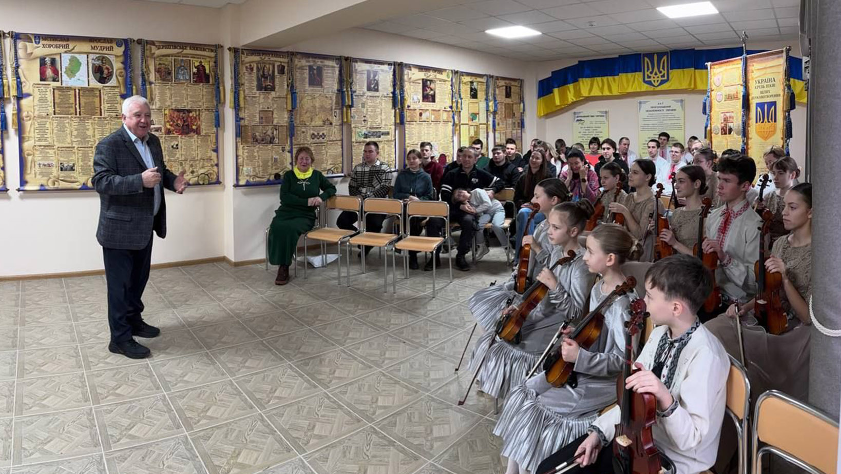 Тон зустрічі влучно підкреслив директор Василь ЛУКАЧ. Звернувшись до гостей словами легендарного «Щедрика», він акцентував на постаті Миколи Леонтовича та глибокому символізмі події. Як ластівка є вісницею весни, так і наша молодь є символом відродження. У стінах Світлиці Української Державності це відчувається особливо гостро. Наші студенти та педагоги, ансамбль скрипалів «Рондо» Ніжинської хореографічної школи на чолі з директором Галиною ТИМОШЕНКО своїм прикладом доводять: українська культура живе! Залишаючись на рідній землі у непрості часи, вони своєю працею та талантом не лише зберігають традиції, а й наповнюють їх новими сенсами.