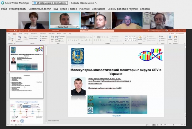 Актуальне питання – моніторинг захворювань риб – підняв у своїй доповіді завідувач лабораторії біотехнологій у рибництві Інституту рибного господарства НААН України Юрій Рудь. Доповідь стосувалася зокрема молекулярно-генетичному моніторингу вірусу віспи коропа, яка приносить значні збитки рибним господарствам України.