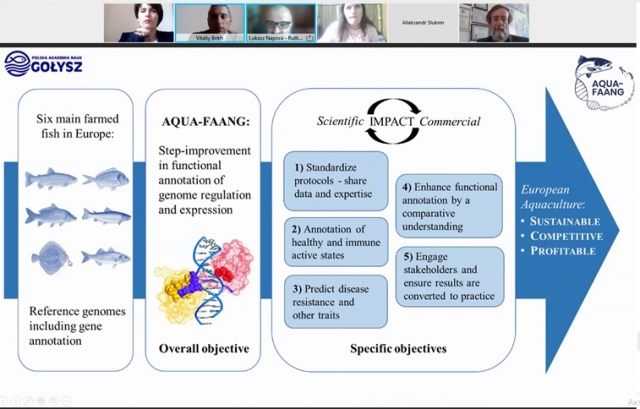 Про нові підходи у вивчені геному риб, що розроблялися в рамках Європейського проекту AquaFAANG розповів Лукаш Напора – співробітник Інституту іхтіобіології та аквакультури Польської академії наук. Такі дослідження, зі слів доповідача, проводяться з наголосом на покращення імунної системи тварин, в тому числі і риб.