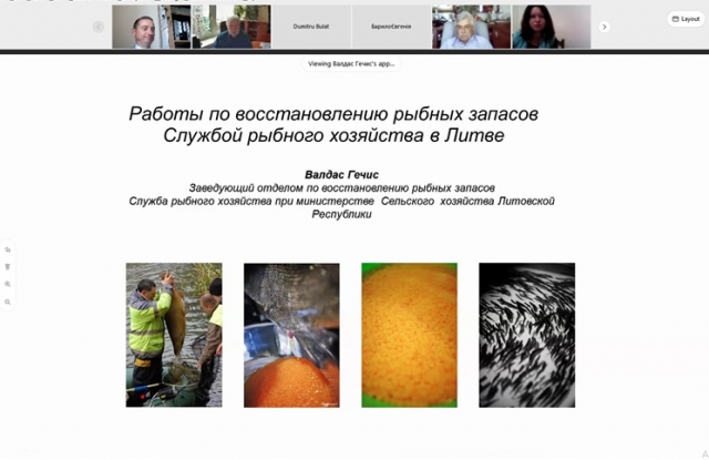 Про стан іхтіофауни Республіки Молдова, фактори, що визначають її стан, а також рекомендації з її покращення розповів Дмитро Булат – д.б.н., завідувач кафедри іхтіології та аквакультури Інституту зоології Академії наук Республіки Молдова. Колеги із Литви (Валдас Гєчіс) поділилися особливостями робіт, що проводяться Службою рибного господарства у Литві з метою відновлення природних рибних запасів. Володимир Шпета – д.т.н., доцент інженерного факультету Поліського державного університету (Білорусь) провів цікаву та актуальну доповідь про сучасні технології, що використовуються для водообробки в аквакультурі.