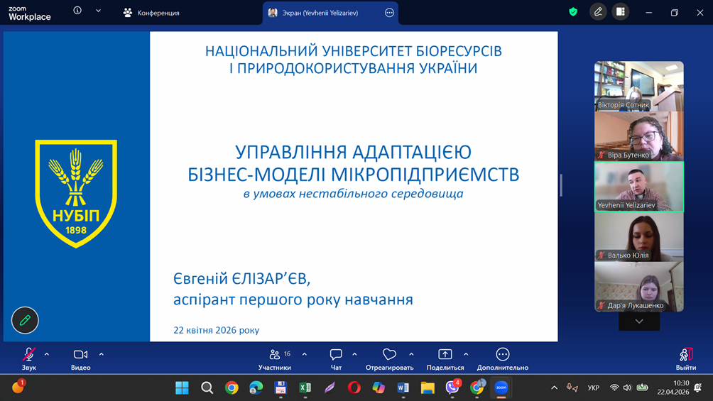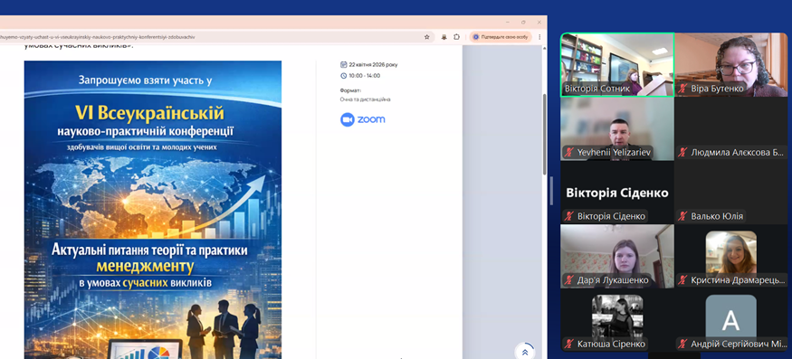 Науково-педагогічні працівники та здобувачі вищої освіти ступеня доктора філософії кафедри економічної теорії Віра БУТЕНКО. Юрій ВЛАСЕНКО, Євген ЄЛІЗАР’ЄВ активно долучилася до роботи VI Всеукраїнської науково-практичної конференції здобувачів вищої освіти та молодих учених «Актуальні питання теорії та практики менеджменту в умовах сучасних викликів», яка проходила на факультеті аграрного менеджменту 22 квітня 2026 року.