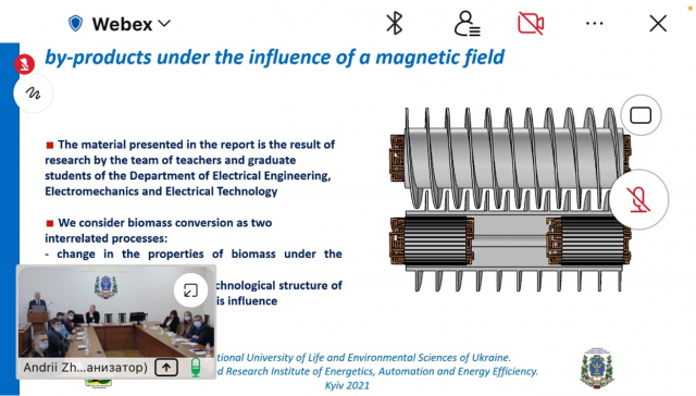 Результати моделювання фізико-хімічних процесів перетворення біомаси під впливом магнітного поля були представлені у доповіді Миколи Заблодського, наукового керівника білатерального проєкту, професора кафедри електротехніки,електромеханіки та електротехнологій НУБіП України.