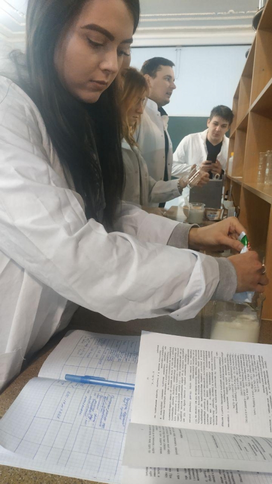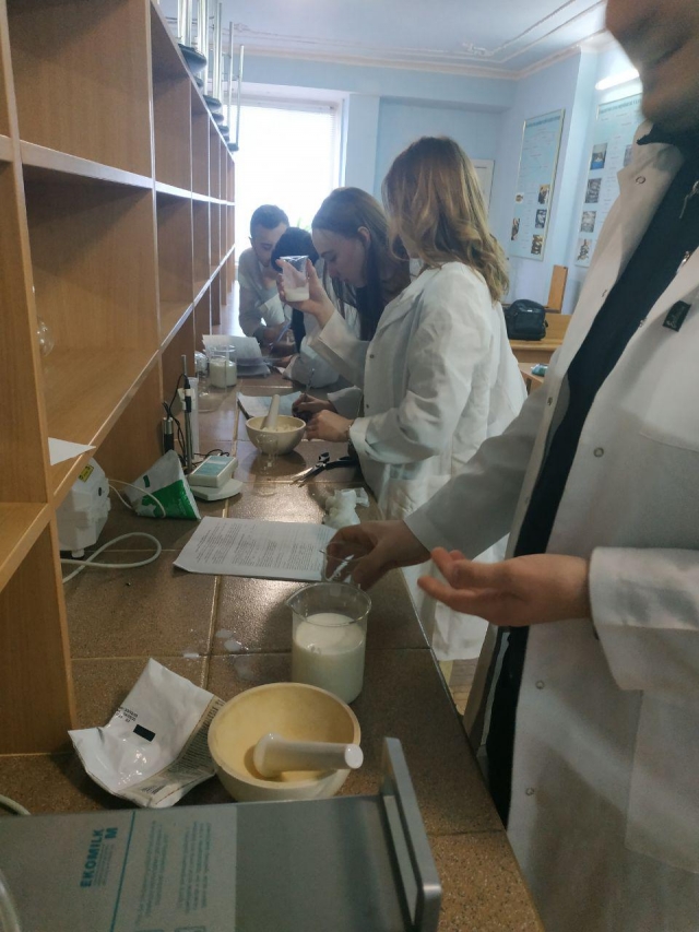 Під час проведення лабораторної роботи студенти спільно з викладачем підготували досліджувані зразки, а саме молочні продукти - пастеризоване молоко, кефір та сир кисломолочний різних виробників.