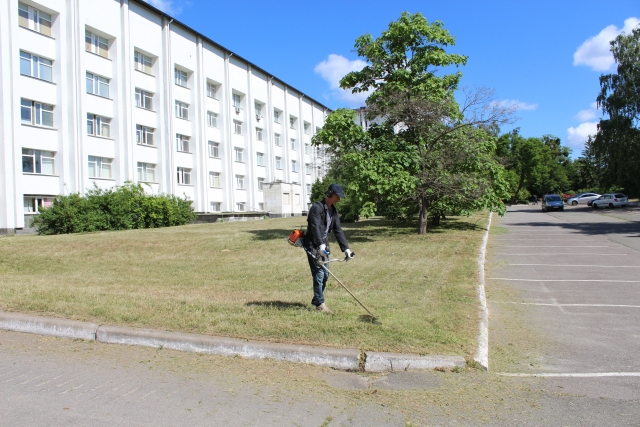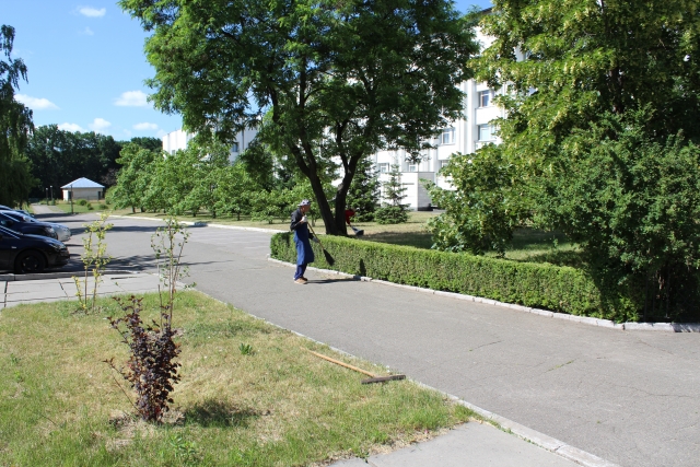 Завдяки співробітникам корпусів №12 і №12А територія є охайною і чистою, а роботи з благоустрою постійно продовжуються, а саме: догляд за газонами, квітами, та нещодавно висадженими соснами і туями.