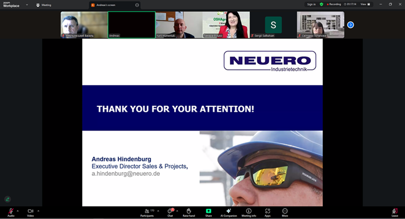 В роботі заходу взяли участь та розглянули загальні питання керування професійними ризиками в системі управління безпеки праці та здоров’я працівників Іан ХАРПЕР, президент Міжнародної організації з безпеки праці, директор HSRM Ltd. (Велика Британія), директор компанії Neuero Industrietechnik GmbH Андреас ХІНДЕНБУРГ (Німеччина) та Сергій САЛКУЦАН — регіональний представник компанії в Україні.