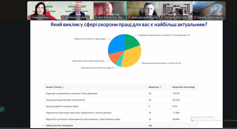 Цікавими та актуальними були доповіді та виступи директора з охорони праці, промислової безпеки та екології ТОВ «Експерт Петролеум Україна» Анатолія АЛЕКСЄЄВА «HAZOP – Аналіз ризиків технологічних процесів», про безпечну відбудову та план безпечного проведення робіт заступника генерального директора з ОП компанії СП «Основа-Солсиф» Ірина ПЕТЧЕНКО, директора ТОВ «АССЕКУРО УКРАЇНА» к.т.н., асистента кафедри будівельних машин Київського національного університету будівництва та архітектури, Андрія ПОЛІЩУКА про впровадження систем безпеки на етапі планування будівництва, реконструкції, відновлення та безпечний доступ до робочих місць на висоті.