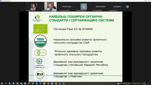 Лектор розповів про загальні вимоги до ведення органічного виробництва, у тому числі про перехідний період для тваринництва, використання неорганічних тварин, основні кроки до сертифікації та найбільш поширені органічні стандарти і сертифікаційні системи.