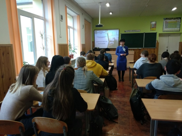 Лариса Карпенко розповіла студентам про сутність маркетингу, маркетинговий комплекс та запропонувала пригадати назви відомих брендів. Виявилося, що сучасні тінейджери поряд з всесвітньо відомими Apple, Adidas, Nike та Amazon знають про українські «Яготинське», «Пирятин», «Рудь», «Андре Тан» та інші.