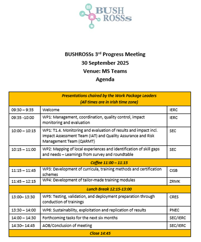 Згідно попередньо погодженої програми зустрічі, партнери проєкту BUSHROSSs обговорили виконання основних робочих пакетів (WP) та узгодили подальші завдання на найближчі пів року.