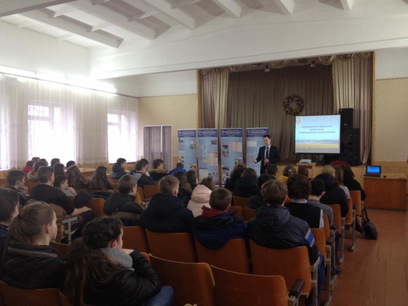 Під час зустрічі з школярами, було представлено структуру НУБіП України, спеціальності за якими здійснюється підготовка фахівців, переваги навчання саме в нашому університеті. Особлива увага була приділена місцю університету серед провідних ВНЗ України, удосконаленню матеріальної бази та розвитку міжнародних звязків. Також запрошено учнів до навчання на підготовчих курсах НУБіП України.