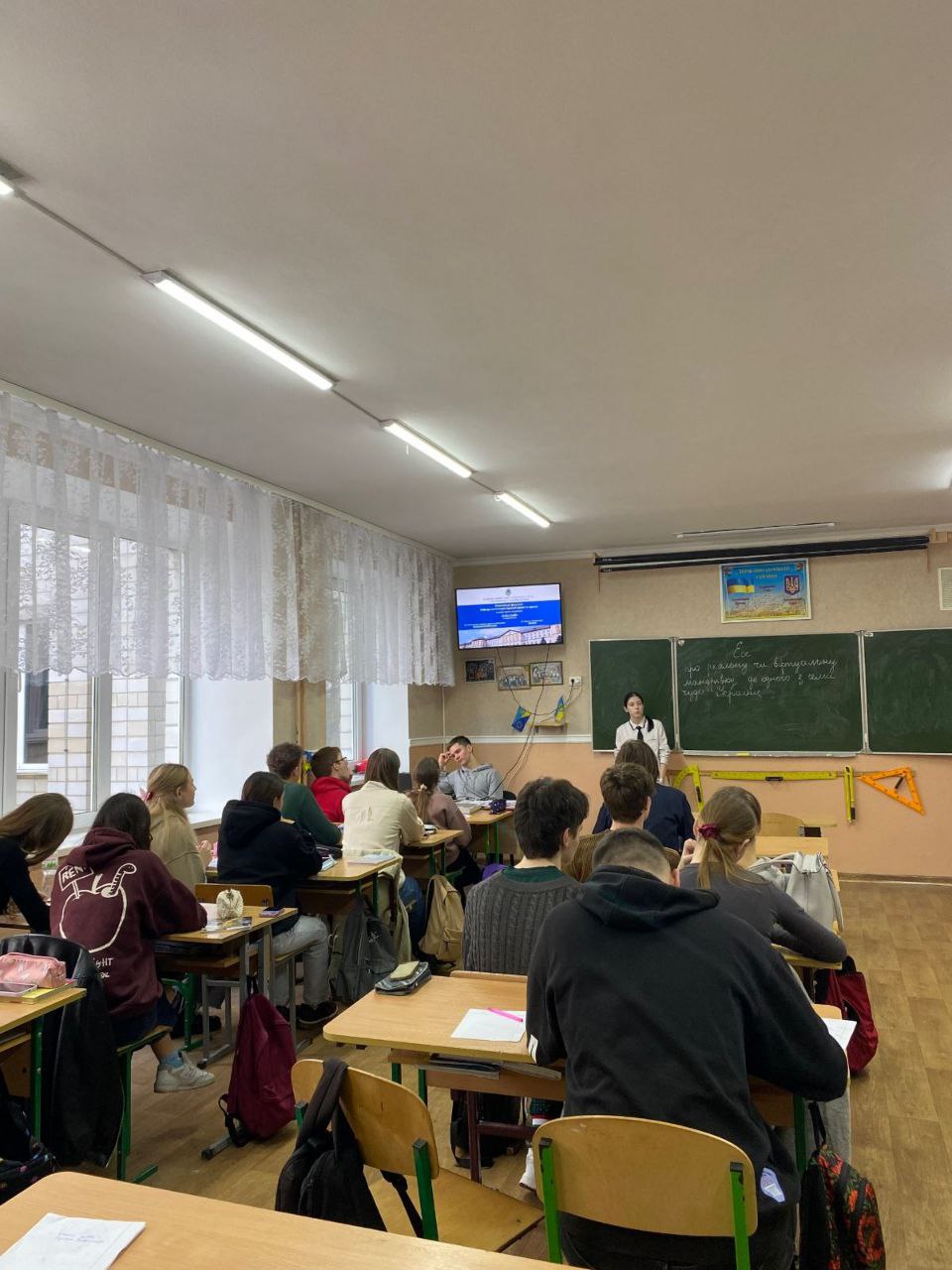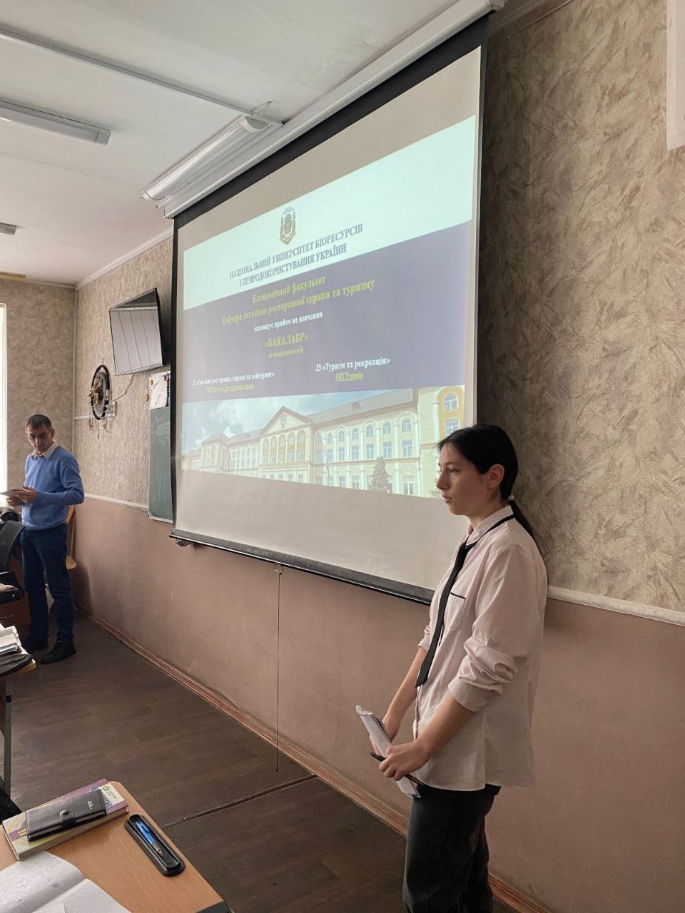 На запрошення класного керівника – вчителя математики – ЧЕПУРНОГО Олександра Анатолійовича – Діана ХРИСТИЧ розповіла учням про широкий спектр спеціальностей економічного факультету НУБіП України, на які можуть вступити випускники ліцеїв, що мріють про роботу в сфері туризму та гостинності.