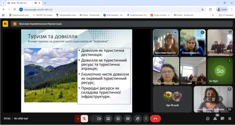 13 листопада 2025 року викладачі кафедри готельно-ресторанної справи та туризму, здобувачі ОП «Туризм» та члени наукових студентських гуртів кафедри мали змогу бути слухачами відкритої онлайн-лекції на тему «Складові безпеки туристичних дестинацій: екологічна безпека», яка об’єднала здобувачів вищої освіти, викладачів і всіх, хто цікавиться сучасними тенденціями розвитку безпечного та відповідального туризму.