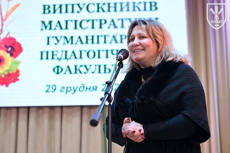 Декан факультету Інна Савицька у вітальному слові згадала, що сьогодняшні випускники, вступаючи у 2024 році в магістратуру, сподівалися отримати глибокі і грунтовні фахові знання і подякувала всім присутнім, за результативний фінал навчання, зазначивши, що диплом – це результат наполегливої праці, підтримки викладачів і віри у власні сили, а отже знання та навички, здобуті в університеті, допоможуть в реалізації найамбітніших мрій.