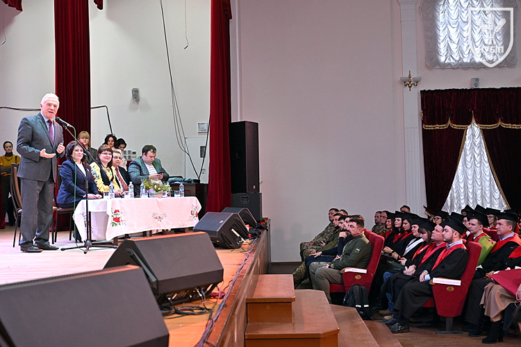 До всіх присутніх звернувся майор Микола Янчій, який подякував викладачам факультету, зазначивши, що отримані дипломи допоможуть адаптуватися та професійно реалізуватися в мирному житті.