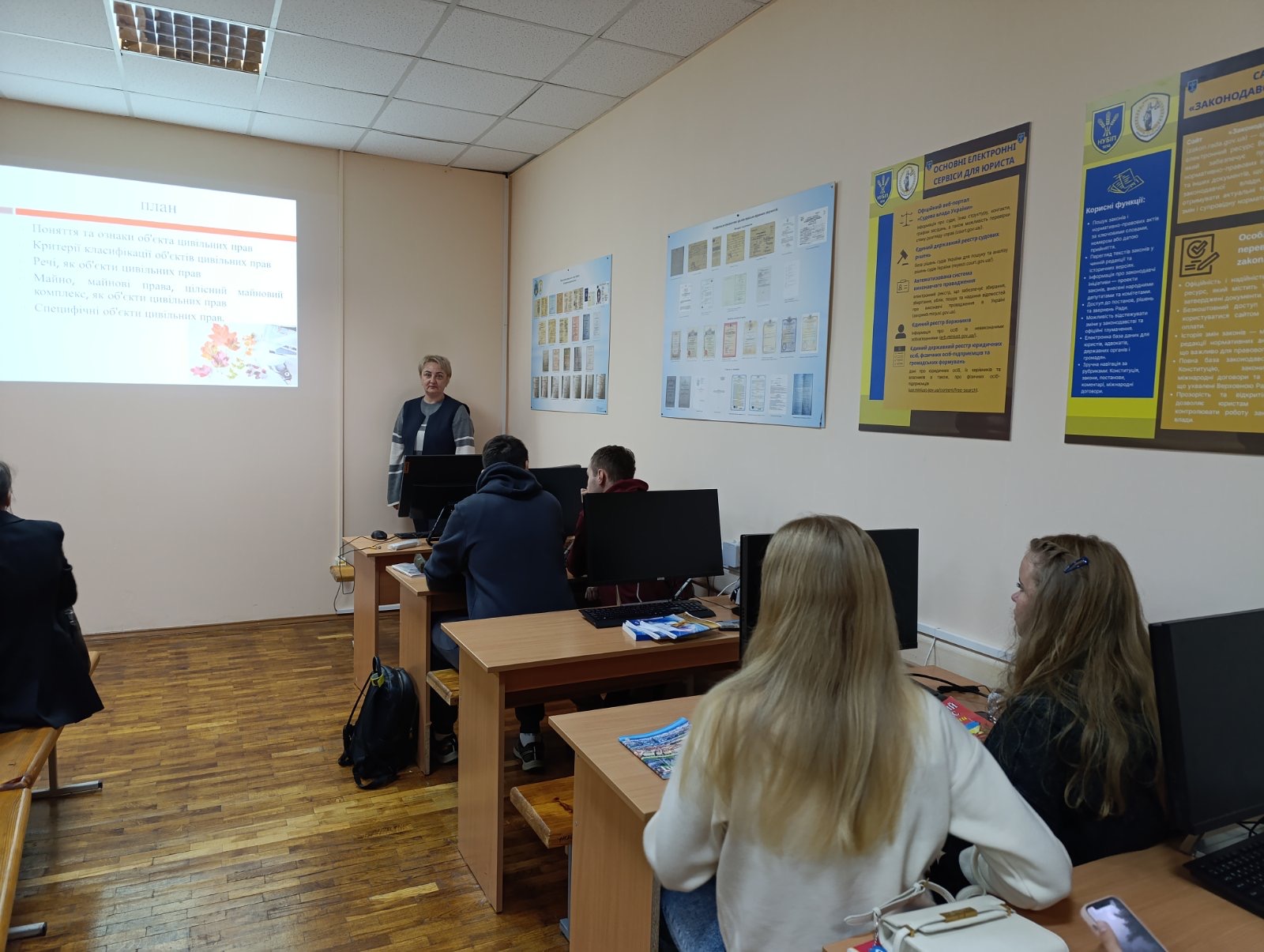 На кафедрі цивільного та господарського права відбулась відкрита лекція з дисципліни «Цивільне право» на тему «Об’єкти цивільних правовідносин» для студентів другого курсу першої групи юридичного факультету.