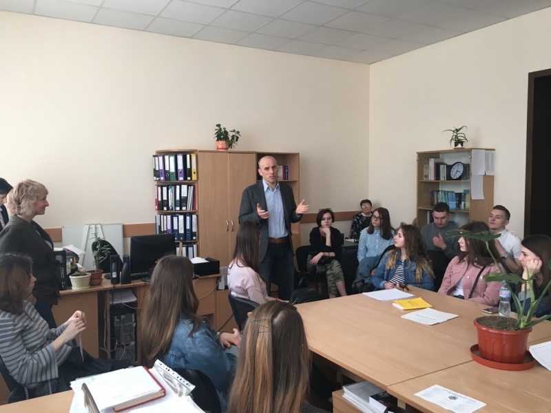 Перед учнями виступив завідувач кафедри соціальної роботи та психології Віталій Шмаргун, який розповів про переваги навчання на гуманітарно-педагогічному факультеті, зокрема про нові спеціальності – «Журналістика» та «Міжнародні відносини», та дав вичерпну інформацію про спеціальність «Психологія».