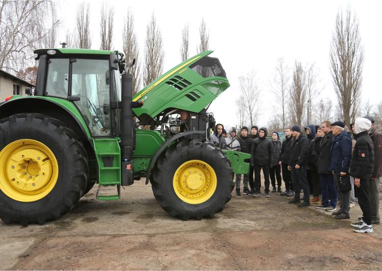Тема заняття «Особливості проведення первинного технічного обслуговування трактора після капітального ремонту» викликала неабиякий інтерес у майбутніх фахівців. Об’єктом вивчення став нещодавно придбаний сучасний трактор John Deere 6195 M, який широко використовується в господарствах України.