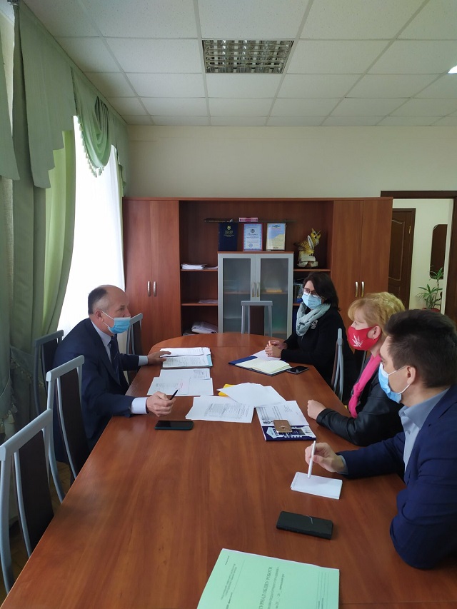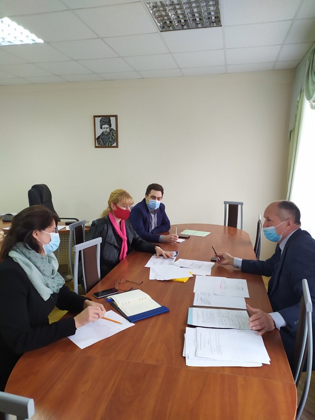 Члени проєктної групи: Олена Ковальова, директор ННІ неперервної освіти і туризму, д.е.н., с.н.с.; Сергій Приліпко, в.о. завідувача кафедри публічного управління і менеджменту інноваційної діяльності, д.держ.упр.; Володимир Олійник, заступник директора ННІ неперервної освіти і туризму, д.держ.упр.; Ірина Грищенко, доктор наук з державного управління, гарант освітньо-наукової програми «Публічне управління та адміністрування» доповіли Сергію Миколайовичу про заходи, проведені в інституті та на кафедрі, що стосуються підготовки до акредитації.