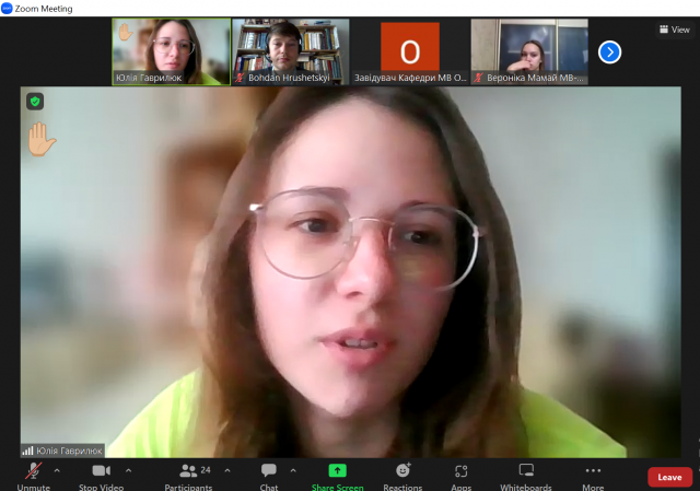 Доцент кафедри Вікторія Хвіст наголосила на важливості підготовки електронних навчальних курсів з дисциплін і їх подальшої акредитації, запису онлайн-лекцій, а також оновлення методичних матеріалів. Студенти та викладачі кафедри обговорили питання вдосконалення каналів комунікації з начальної, наукової та організаційної роботи, зокрема ведення веб-сторінки кафедри, сторінок Telegram, Instagram, YouTube, TikTok, а також створення єдиної бази даних з дисциплін.