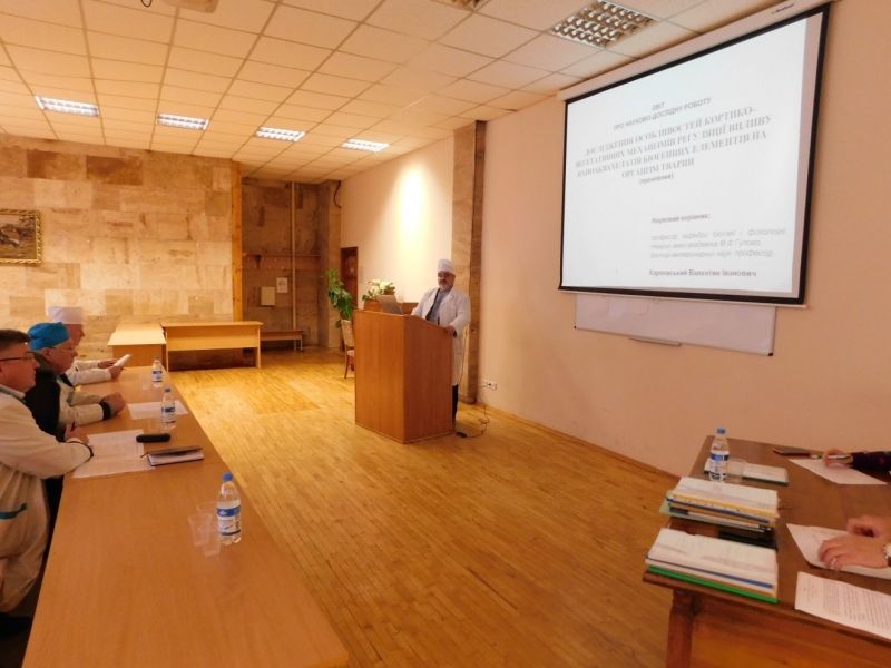 Професор Карповський В. І. представив звіт на тему: "Дослідження особливостей кортико-вегетативних механізмів регуляції впливу наноаквахелатів біогенних елементів на організм тварин", № договору 110/93-ф, строки виконання: 2014–2019 рр., обсяг фінансування на 2018 р. - 232000 грн.