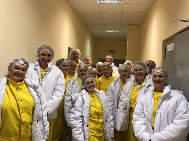 Знайомство з комбінатом переробки курчат-бройлерів ТМ «Наша ряба» справила позитивне враження на учасників та викладачів курсу «Food Safety Short Course». Працівники комбінату, турбуючись про чистоту, безпеку та дотримання санітарних вимог, провели анкетування для оцінки стану здоров’я відвідувачів, після чого всі члени групи отримали одноразовий відповідній костюм (комбінезон, шапку, чоботи).