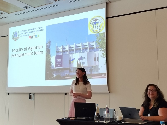 Альона Тюріна презентувала факультет аграрного менеджменту загалом, зосередивши увагу на напрямах наукових досліджень, структурі та проєктах, які реалізуються.