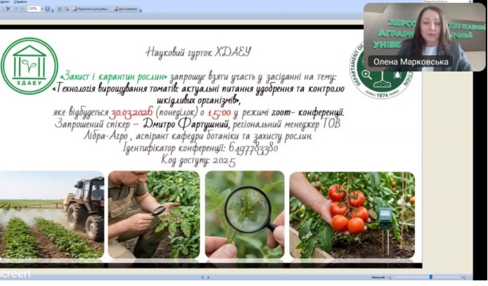 УЧАСТЬ ГУРТКІВЦІВ КАФЕДРИ ФІТОПАТОЛОГІЇ НУБіП УКРАЇНИ У ВІДКРИТОМУ ЗАСІДАННІ СТУДЕНТСЬКОГО НАУКОВГО ГУРТКА «ЗАХИСТ І КАРАНТИН РОСЛИН» ХЕРСОНСЬКОГО ДЕРЖАВНОГО АГРАРНО-ЕКОНОМІЧНОГО УНІВЕРСИТЕТУ