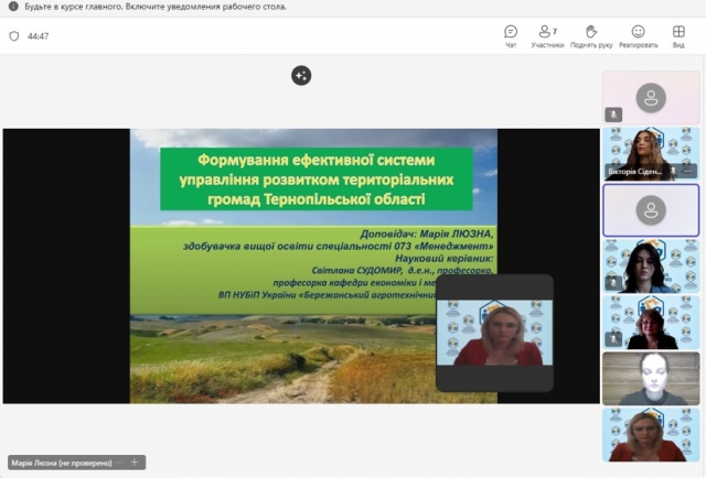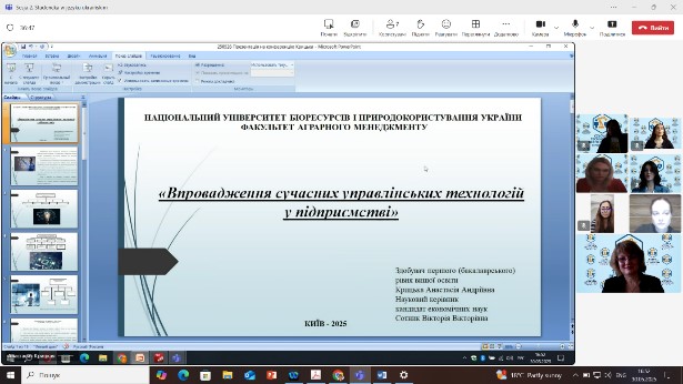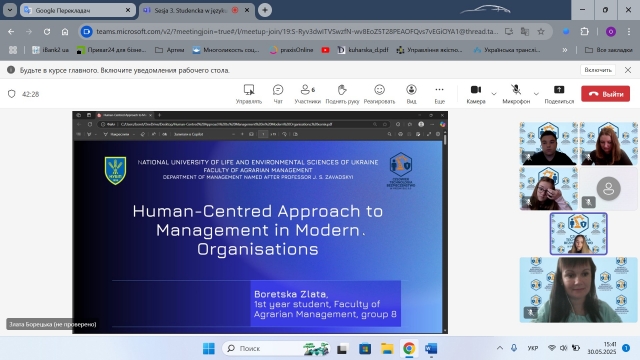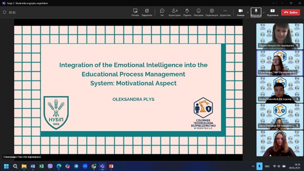 Модераторами секцій конференції, де з науковими доповідями виступали здобувачі вищої освіти, були науково-педагогічні працівники кафедри менеджменту ім. проф. Й. С. Завадського НУБіП України Тетяна Балановська, Оксана Гавриш, Кристина Драмарецька та Вікторія Сотник. Молоді науковці, які на конференції представляли Україну: здобувачі вищої освіти факультету аграрного менеджменту НУБіП України - Вікторія Сіденко, Анастасія Крицька, Катерина Соломахіна, Олександра Плис, Злата Борецька, Юлія Хомин та Андрій Маланчук; ВП НУБіП України «Бережанський агротехнічний інститут» - Марія Люзна; ВСП «Боярський фаховий коледж НУБіП України» - Катерина Семенків. Студенти представили результати власних досліджень, пов’язаних із темами сучасних цифрових технологій, штучного інтелекту, кібербезпеки, сталого розвитку, розвитку аграрного сектору економіки та охорони навколишнього середовища.