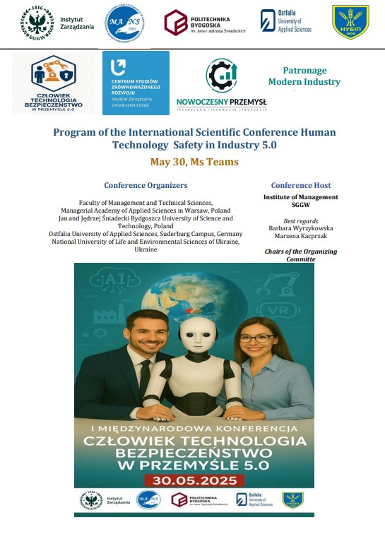 30 травня 2025 року Варшавським університетом наук про життя (Warsaw University of Life Sciences - SGGW) була організована та успішно проведена Міжнародна наукова конференція «Людина Технологія Безпека в Індустрії 5.0», серед співорганізаторів якої був Національний університет біоресурсів і природокористування України. Захід об’єднав молодих науковців, викладачів і здобувачів вищої освіти з Польщі, України та інших країн Європи для обговорення актуальних викликів у контексті нової парадигми розвитку – Індустрії 5.0.