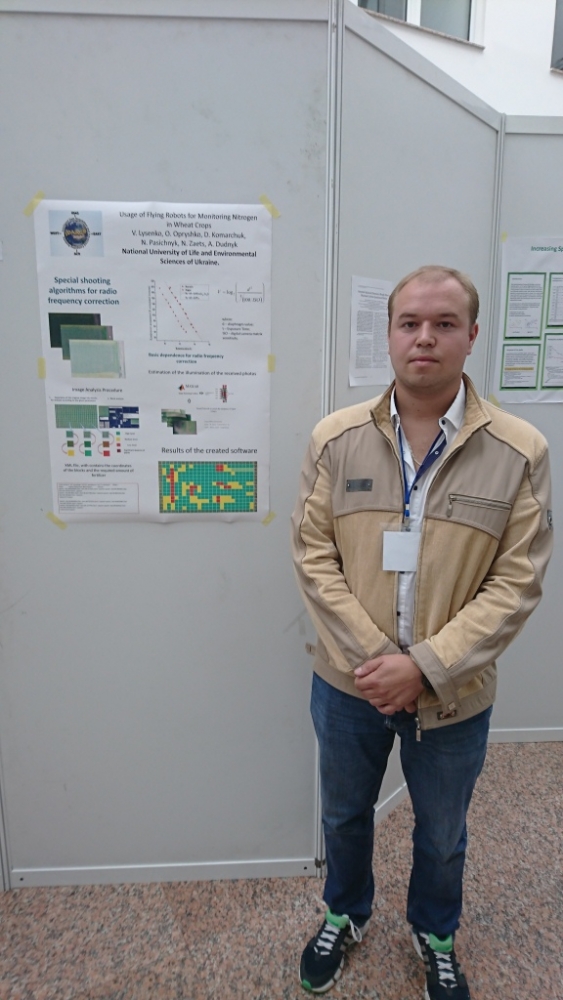 Участь у цій престижній конференції взяли і представники кафедри кафедри автоматики та робототехнічних систем ім. акад. І.І. Мартиненка нашого університету з доповіддю «Usage of Flying Robots for Monitoring Nitrogen in Wheat Crops» авторів V. Lysenko, O. Opryshko, D. Komarchuk, N. Pasichnyk, N. Zaets, A. Dudnyk. Доцент кафедри Д. Комарчук проіформував учасників конференції про результати дистанційного моніторингу станів рослинних насаджень з метою раціонального використання мінеральних добрив.