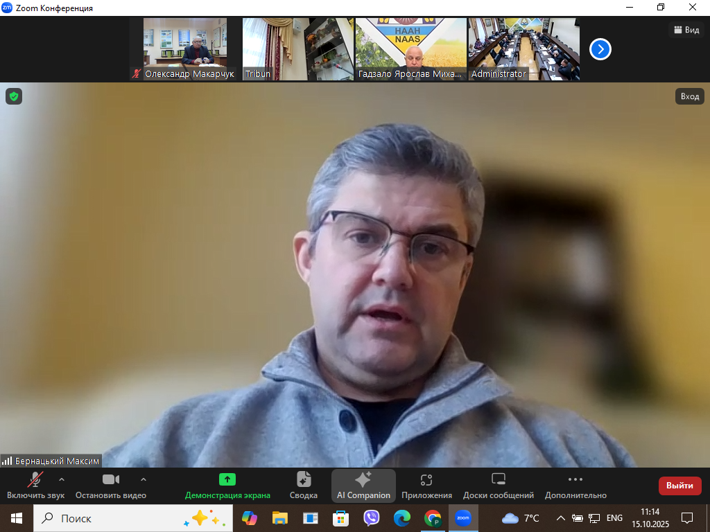 Особливу зацікавленість учасників президії викликав виступ та коментар відомого селекціонера, академіка НААН України Бориса Дзюбецького.