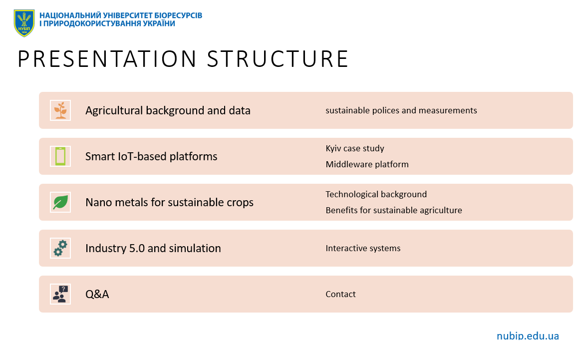Володимир НАЗАРЕНКО, доцент кафедри комп’ютерних систем, мереж та кібербезпеки, голова ради молодих вчених факультету інформаційних технологій виступив з науковою доповіддю «Modern Technologies for Sustainability Assessment in Agriculture», відкривши роботу секцію: «Key Results of the Digiagrar_ua Project».