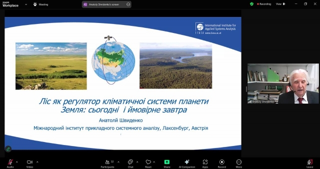 • Професора Анатолія Швиденка із Міжнародного інституту прикладного системного аналізу (IIASA, Австрія) на тему «Ліс як регулятор кліматичної системи планети Земля: сьогодні та ймовірне завтра»;