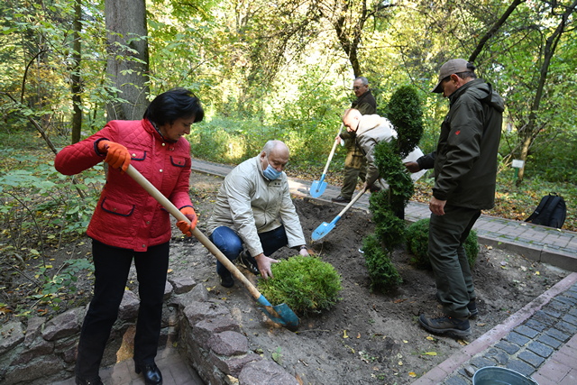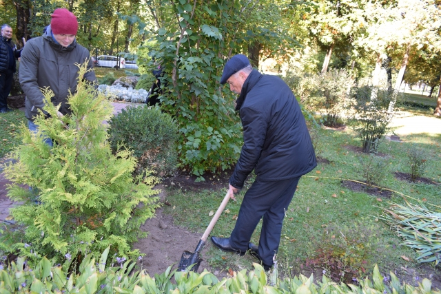 У ботанічному саду – одному з кращих в Україні за наповненням колекції та оформленням – для наповнення колекції і отримання нових ландшафтних груп висаджені 732 одиниці дерев і кущів, говорить один з її організаторів – завідувач кафедри ботаніки, дендрології та лісової селекції Юрій Марчук. Це як традиційні для нашого регіону деревні та кущові види, так і унікальні культивари. Зокрема, деревця кедрової сосни європейської, які ми привезли з Прикарпаття ще зовсім маленькими і дорощували у нашому розсаднику. До речі, всі форми, що були висаджені цього дня, вирощені саме тут руками залюблених у цю роботу людей – спеціалістів ботсаду і майстрів виробничого навчання.