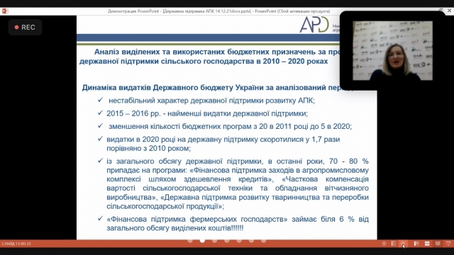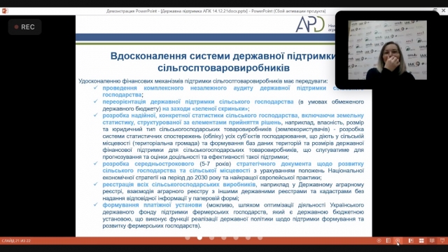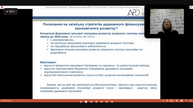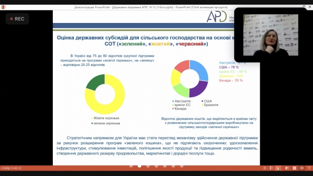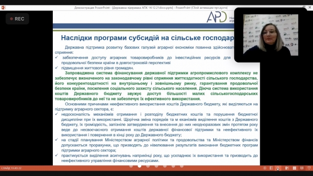 Участь НПП кафедри у круглому столі APD на тему «Аналіз ефективності державних субсидій для розвитку сталого сільського господарства в Україні»