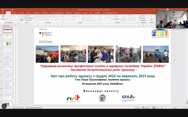 Участь в робочому засіданні в рамках проєкту "Сприяння розвитку професійної освіти в аграрних коледжах України"