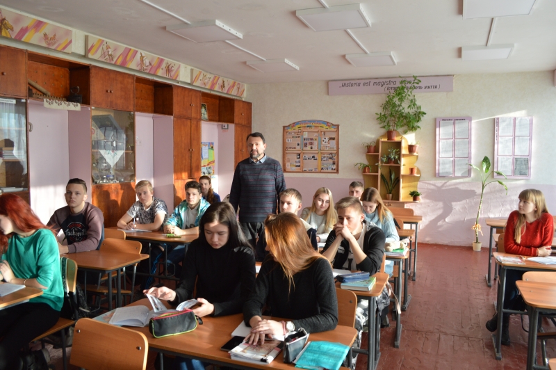 В розмові з учнями Лакатош В.М. розповів про важливість отримання вищої освіти як для них особисто, так і для країни, про особливості вибору для продовження навчання свого майбутнього вищого навчального закладу і професії.