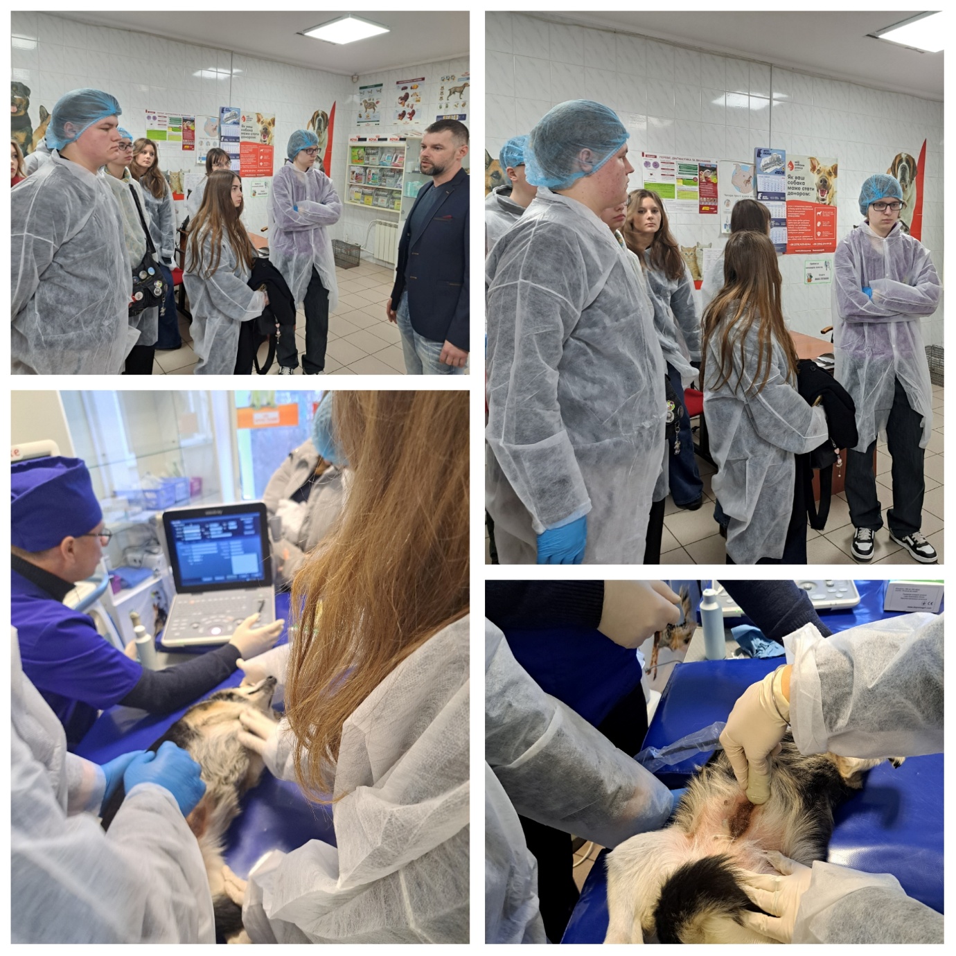 Особливе враження справила зустріч із лікарем ультразвукової діагностики. Він продемонстрував, як проводиться дослідження, пояснив його значення для діагностики та навіть дозволив учням спробувати зробити УЗД собаці. Такий досвід дав можливість відчути себе частиною професійної команди та зрозуміти, наскільки важливі сучасні технології у ветеринарній медицині.