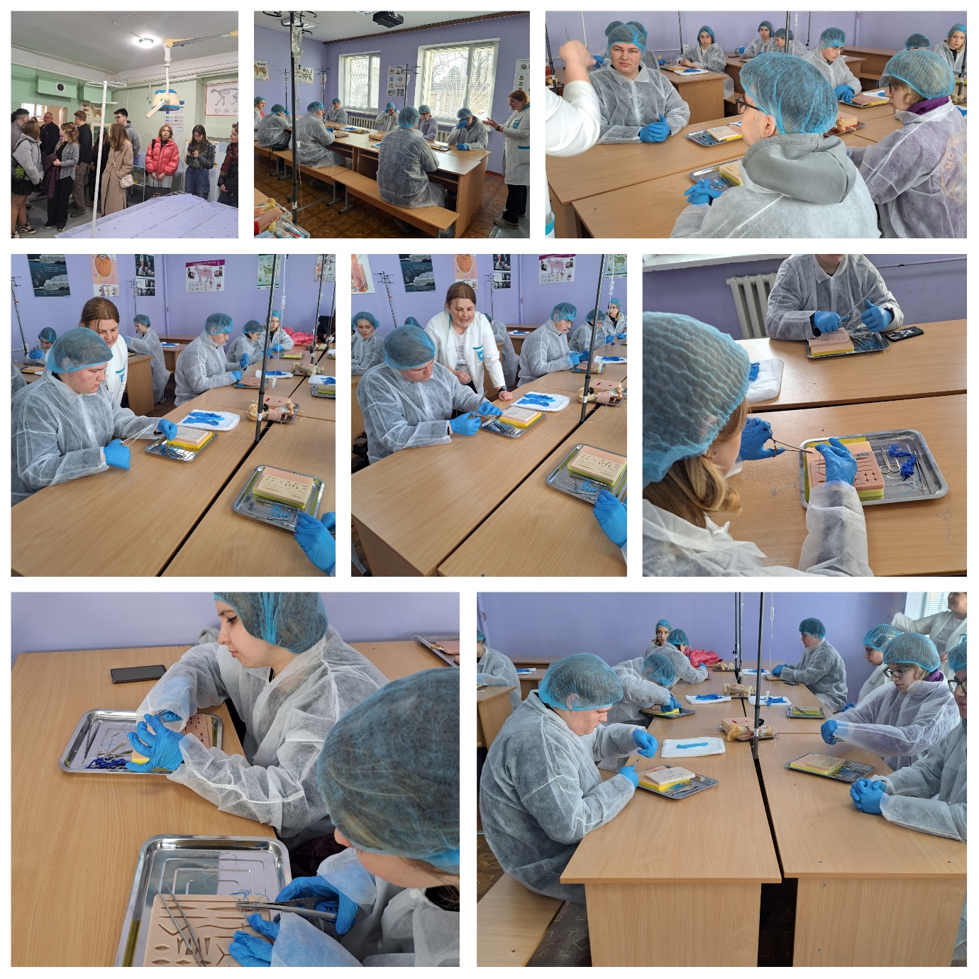 У практичній частині учні спробували себе в ролі хірургів: навчалися накладати шви на спеціальних макетах, працювати з голками та користуватися базовим хірургічним інструментом. Такі вправи допомогли зрозуміти, що професія лікаря ветеринарної медицини вимагає високої точності, відповідальності та стійкої концентрації.