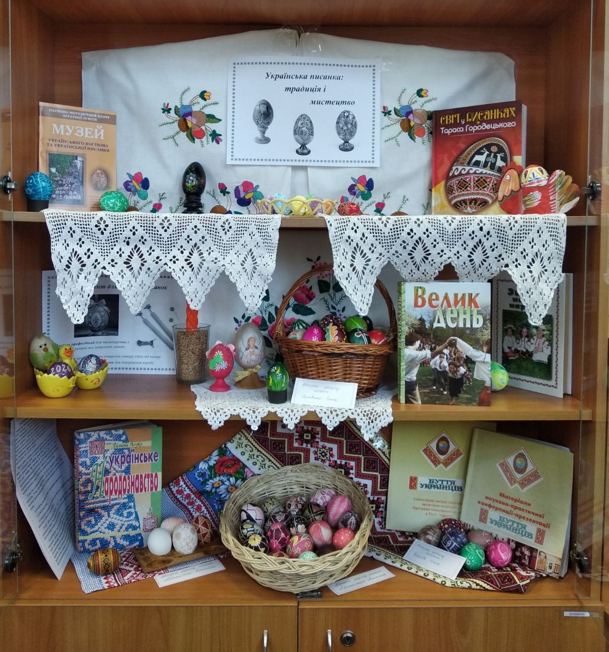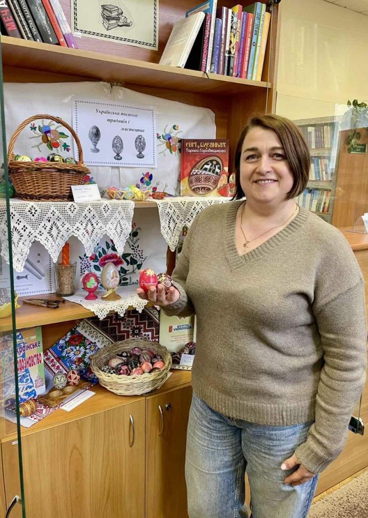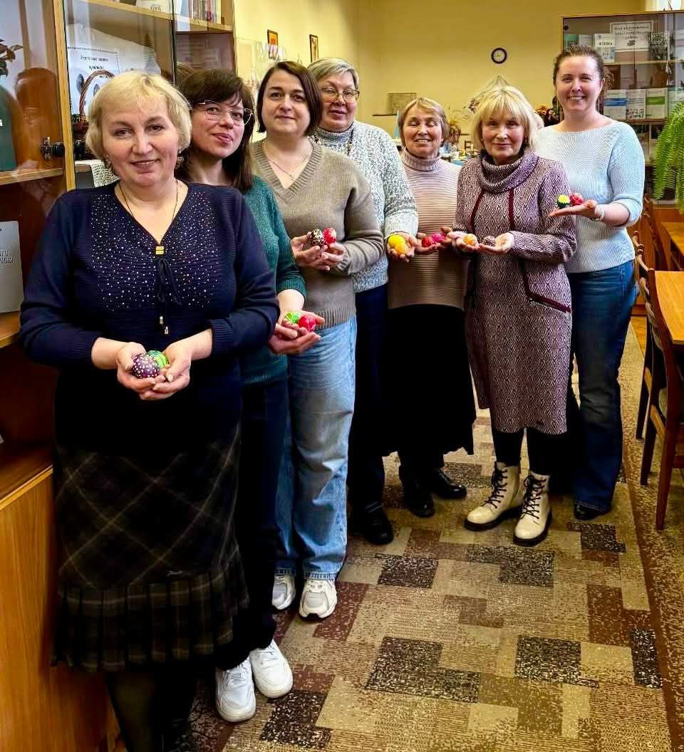 Організаційною душею простору стали Олена ЛИТОВЧЕНКО та Любов КОВАЛЬЧУК, які створили атмосферу відкритості й творчої взаємодії. За спільним столом працювали як досвідчені майстри, так і новачки, допомагаючи один одному й обираючи орнаменти за настроєм. У філії наукової бібліотеки є також спеціальна література, де описуються техніка, значення орнаментів, наведені взірці писанок, і кожен охочий може взяти книгу та обрати візерунок до свого настрою. Вже традиційна тематична виставка «Українська писанка: традиція і мистецтво» стала окрасою заходу – із рушниками, колекцією 48 писанок та різними техніками: від травленки до дряпанки. Особливу увагу привертали роботи Антоніни МОСКАЛЕНКО, Олени ЛИТОВЧЕНКО та Ольги ФРОЛОВОЇ, які стали справжньою окрасою виставки. Експозиція діє до 27 квітня 2026 року, тож усі охочі ще мають нагоду завітати до філії наукової бібліотеки в навчальному корпусі № 6 та ознайомитись із роботами майстринь (кім. 133).