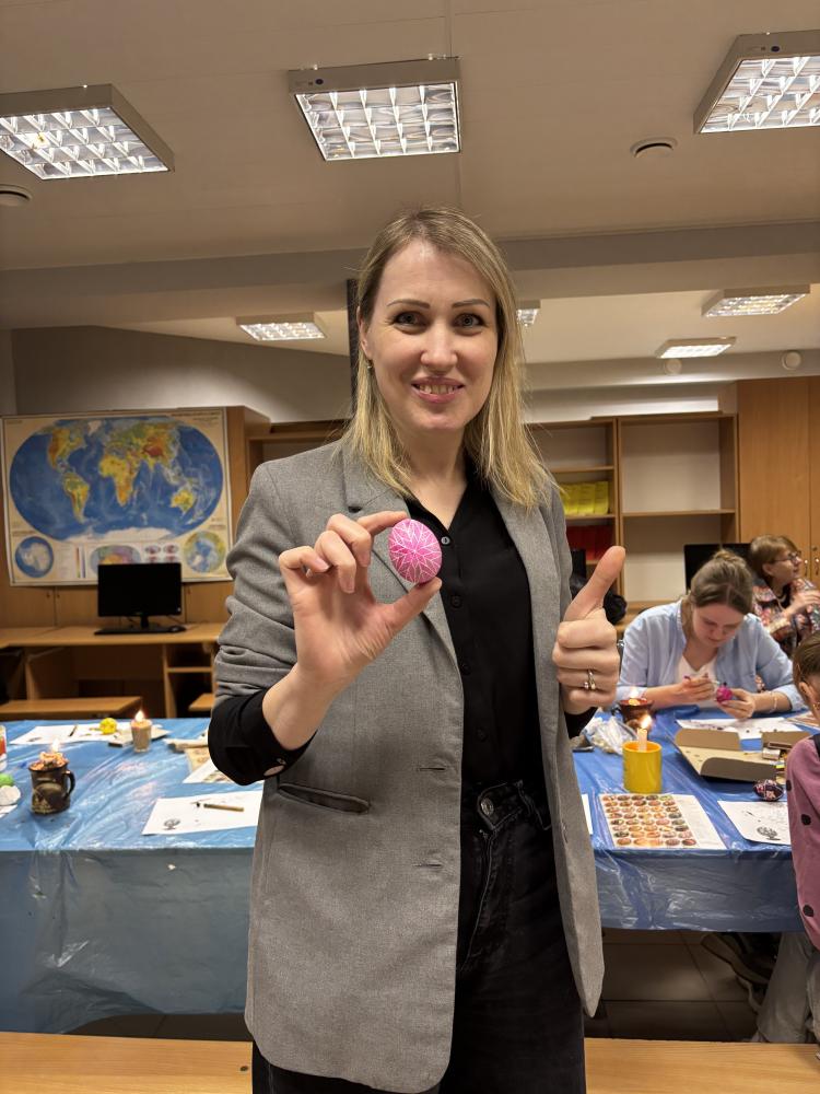 Із 24 березня по 02 квітня 2026 року учасники мали змогу доторкнутися до справжнього мистецтва писанкарства під керівництвом Антоніни МОСКАЛЕНКО — завідувачки кафедри геоінформатики і аерокосмічних досліджень Землі. Саме вона вже багато років поспіль передає знання, натхнення і любов до цієї справи новим поколінням.