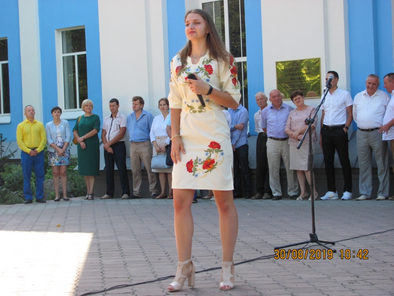 В передостанній день літа на агробіологічному факультеті відбулися урочистості з нагоди посвяти в студенти першокурсників. Захід розпочався гімном. Декан факультету Оксана Тонха представила своїх заступників й завідувачів кафедр і привітала першокурсників, їхніх батьків, науково-педагогічних працівників та гостей зі святом. Декан побажала студентам успіхів у здобутті знань, розвиватися, досягти своєї мети, брати активну участь у житті факультету, адже завдяки студентам факультет здобуває перші місця у спортивних змаганнях та інших культурно-масових заходах.