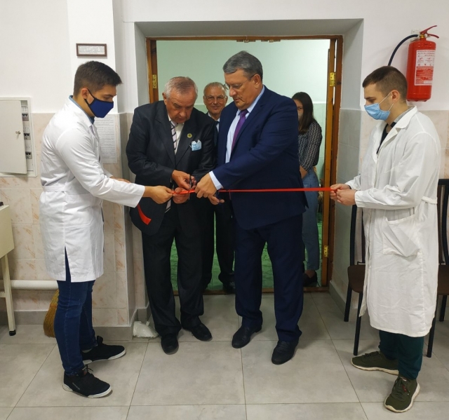 Завідувач кафедри професор Григорій Подпрятов та Вадим Ткачук урочисто розрізали червону стрічку та звернулися із вітальним словом до присутніх.